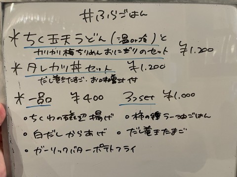 アイステオープンしました! 本日の #ふらごはん はちくわの磯辺揚げと卵天のぶっかけうどんと、焼きおにぎりのセットです! レッスンお待ちしております🌸 https://t.co/mHcAkjn42Z