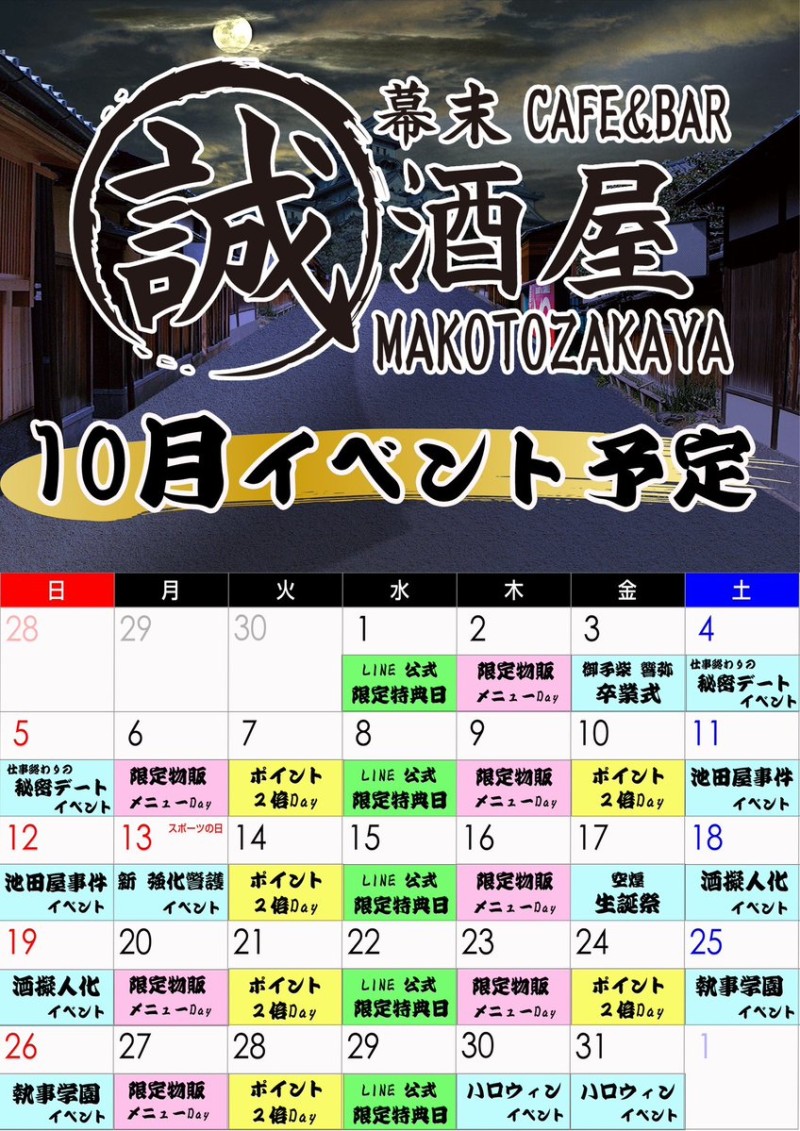 10月も誠酒屋で楽しい時間を過ごしましょう🍁✨
