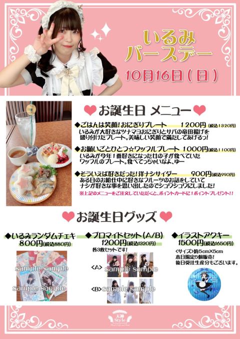 12時から21時までいるみが選んだ衣装でお給仕いたします!