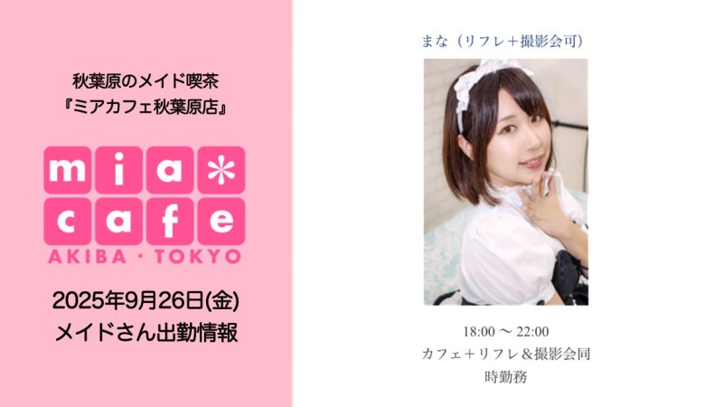 👑本日9月26日(金)のミアカフェ秋葉原店