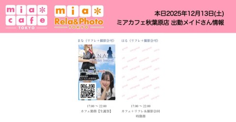 👑本日12月13日(土)のミアカフェ秋葉原店