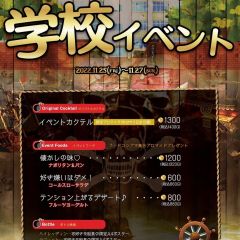 | 営業時間 | 月〜木 17時〜23時 金、祝前日 17時〜翌5時 土、12時〜翌5時 日、祝日 12時〜23時 年中無休(年末年始臨時休業有り) | ||||||||||||||