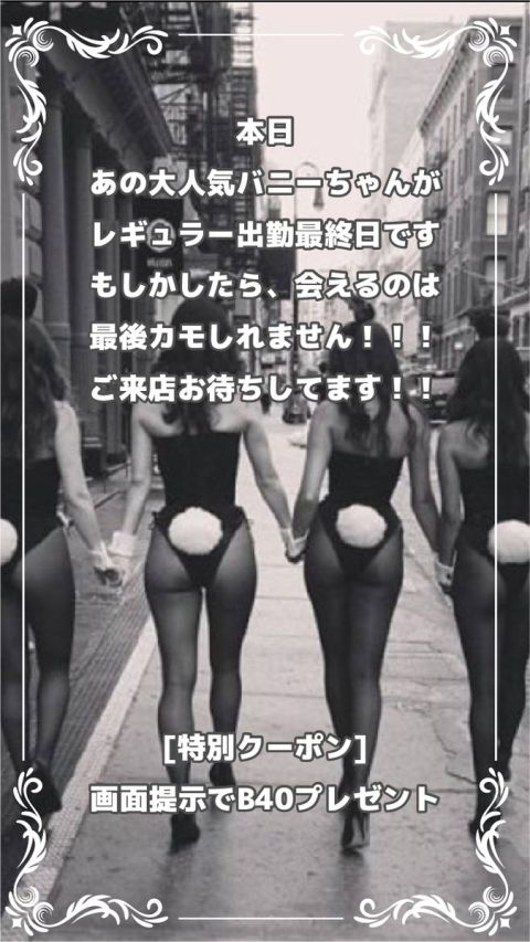 【✨GW2日目OPEN🎉✨】 28日から4日までノンストップで営業する2日目!! オープンしました👯‍♀️ 珍しく日月火も営業してますので普段来店できない方のご来店もお待ちしております🐇 ※今日のクーポンのヒントはこの期間限定のアレ😉 #バニーガール も大募集中🙌 お気軽にご連絡ください🐰 #中野 #バニー https://t.co/Ate1ZRofTs