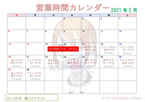 2月後半の出勤カレンダーです!