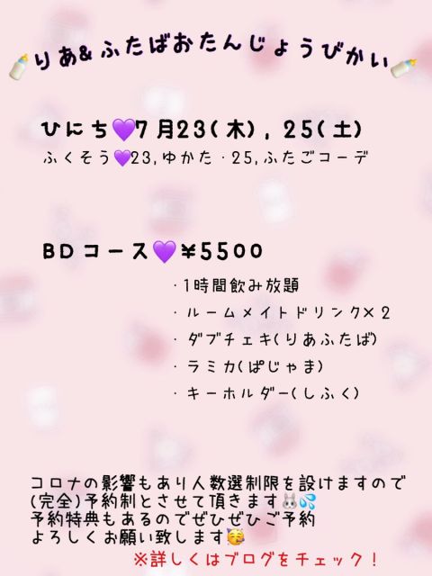 予約は電話、ワンルームのTwitterDM、りあちゃんのリプ,DMでも受け付けていますのでお気軽にご連絡ください💜