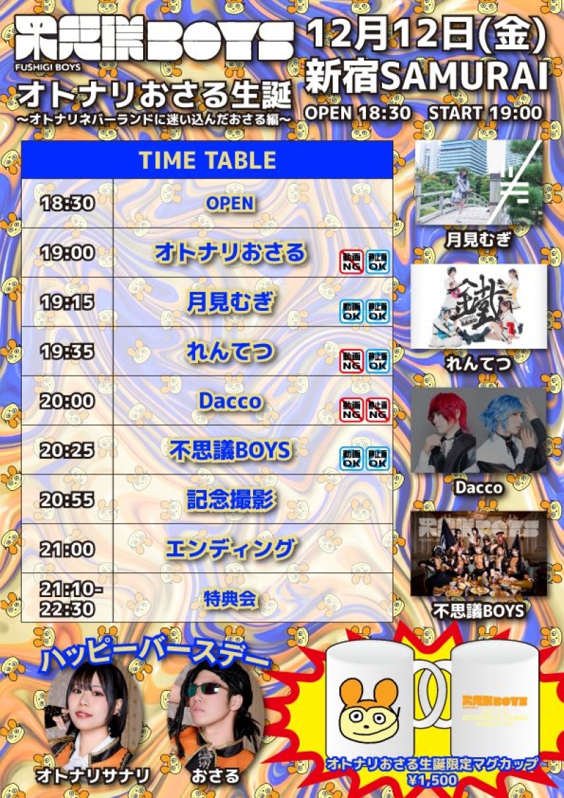 12/12金オトナリおさる生誕〜オトナリネバヌランドに迷い蟌んだおさる線〜 📍新宿SAMURAI ⏰OPEN18:30START19:00 🎀19:35-20:00 📞21:10-22:45 🎫前売 3000円/圓日 3500円 🔗https://t.co/nEb6iuvQ7O https://t.co/VoJ0yHF74C
