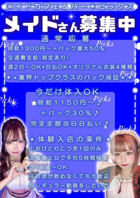 東京1の宇宙コンセプト🚀 ピックスのメイドさんを大募集✨ 🔸18歳~※23時頃まで勤務必須 🔹オリジナル制服4種類 🔸交通費全額支給(条件有) 🔹お散歩少なめ 🔶バック最大50%で保証有り👍🏻 🔹日払い🆗 🔸時給1300円~(研修1200円〜) 🔹今だけ体入有り #新宿 #歌舞伎町 #コンカフェ #求人 #コンカフェ巡り https://t.co/JVRLKfAMgE