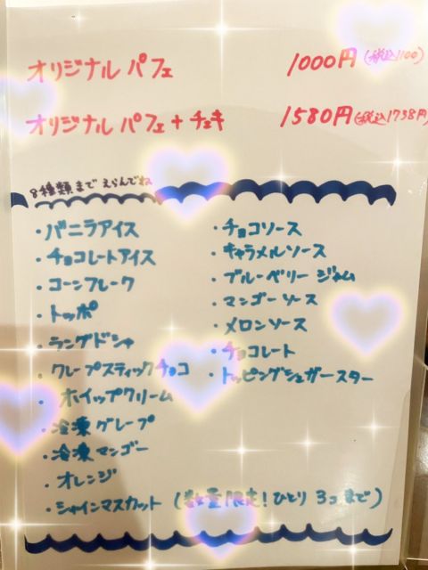 その他色々なトッピングを8種類まで選べますので、とても豪華なパフェ食べに来てください😊