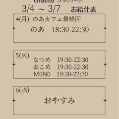| 営業時間 | ・平日 18:30~22:30 ・土曜日 12:30~22:30 ・日曜日 12:00~20:00 | ||||||||||||||