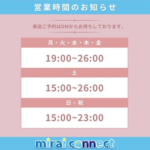 #miraiconnect 月曜日~金曜日は 19時OPEN★ #福岡 #コンカフェ https://t.co/6vA9y7O968